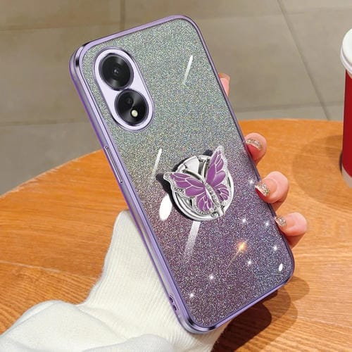 Para Oppo A38 4G Funda para Teléfono de TPU con Soporte de Mariposa con Brillo Degradado Plateado (Púrpura)