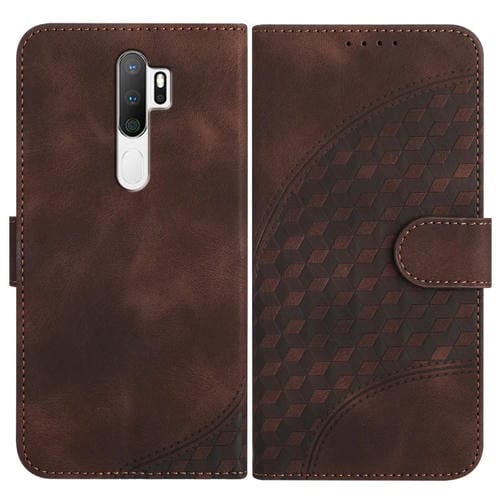 Para Oppo A5 2020 / A9 2020 Yx0060 Funda de Cuero para Teléfono con Relieve y Cabeza de Elefante con Cordón (Café)