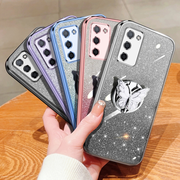 Para Oppo A55 5G Estuche para Teléfono de TPU con Soporte de Mariposa con Brillo Degradado Plateado (Plata)