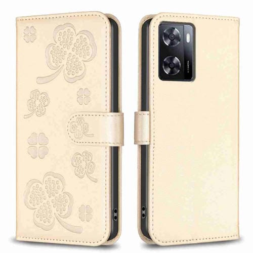 Para Oppo A57 4G Funda de Cuero con Relieve de Cuatro Hojas (Dorado)