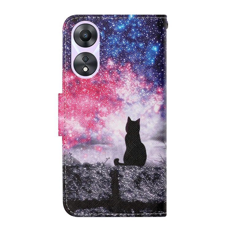 Para Oppo A58 4G Funda de Cuero para Teléfono con Patrón de Dibujo Coloreado (Star Sky Cat)