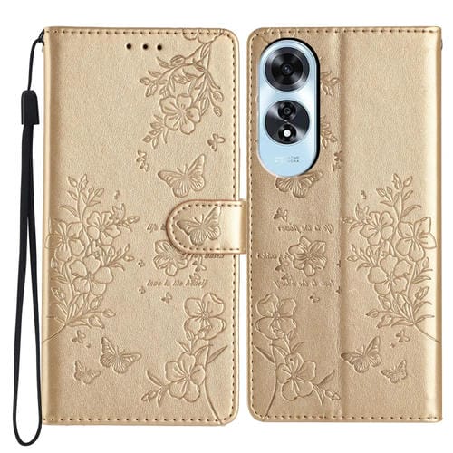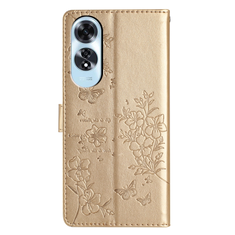 Para Oppo A60 Butterfly Love Flower Funda de Cuero para Teléfono En Relieve (Oro)