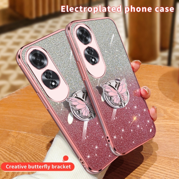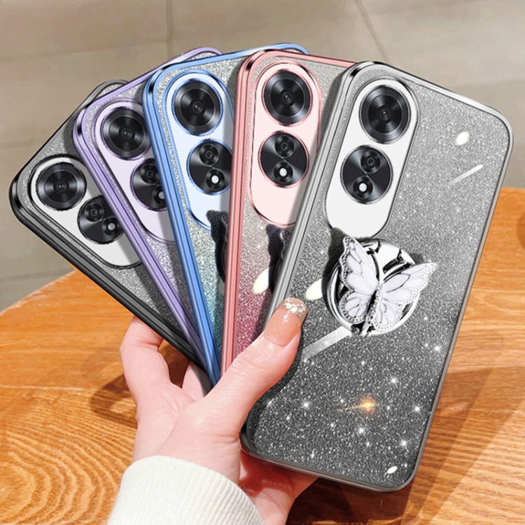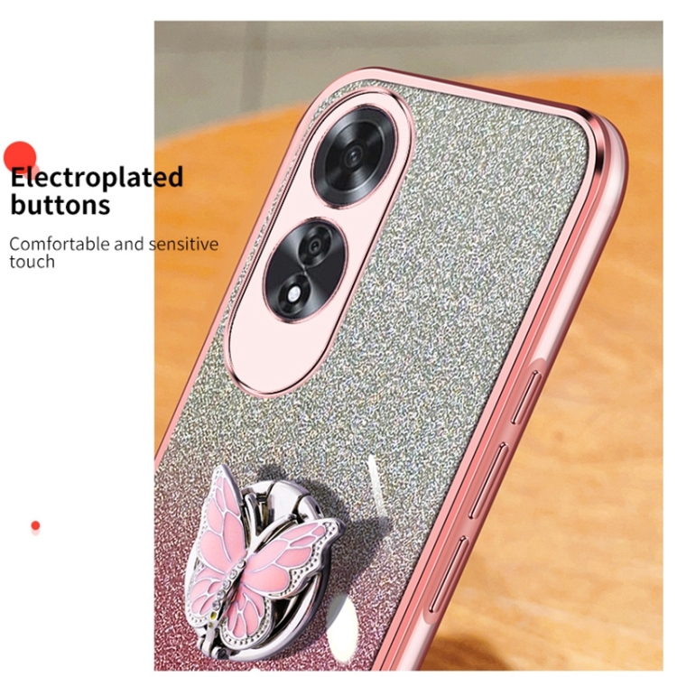 Para Oppo A60 Funda para Teléfono de TPU con Soporte de Mariposa con Brillo Degradado Plateado (Azul Sierra)