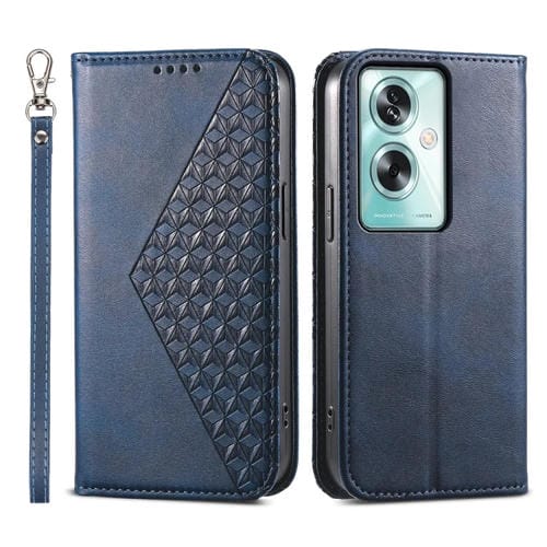 Para Oppo A79 5G Cubic Grid Calf Texture Funda de Cuero Magnética para Teléfono (Azul)