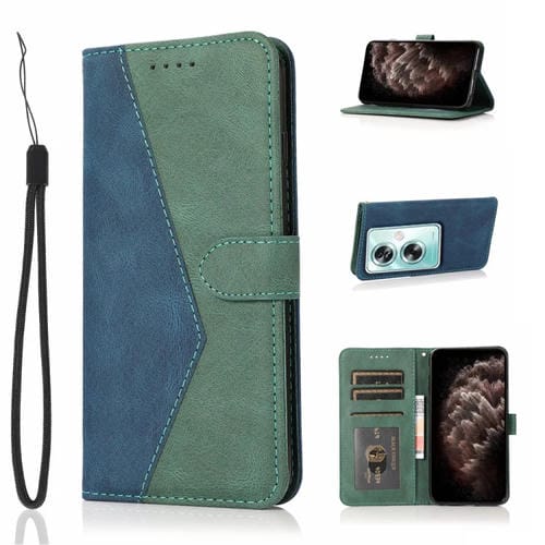 Para Oppo A79 5G Funda de Cuero con Costuras de Dos Colores (Azul Verde)
