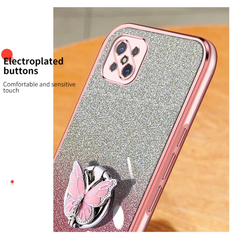 Para Oppo A92S Funda para Teléfono de TPU con Soporte de Mariposa con Brillo Degradado Plateado (Rosa)