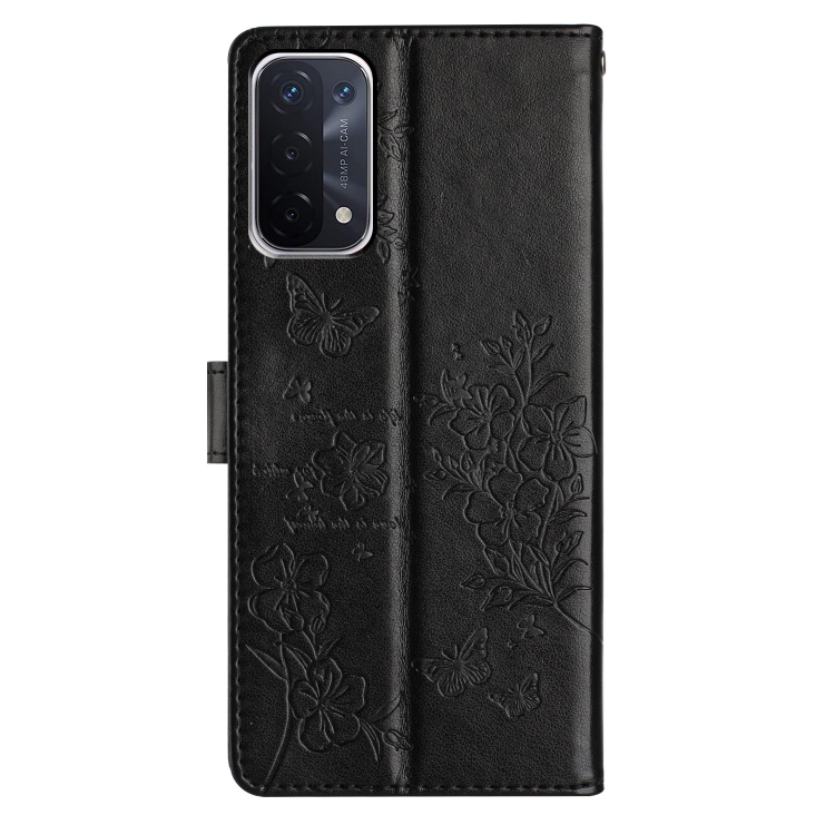 Para Oppo A93 5G Butterfly Love Flower Funda de Cuero para Teléfono En Relieve (Negro)