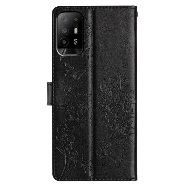 Para Oppo A94 5G Butterfly Love Flower Funda de Cuero para Teléfono En Relieve (Negro)