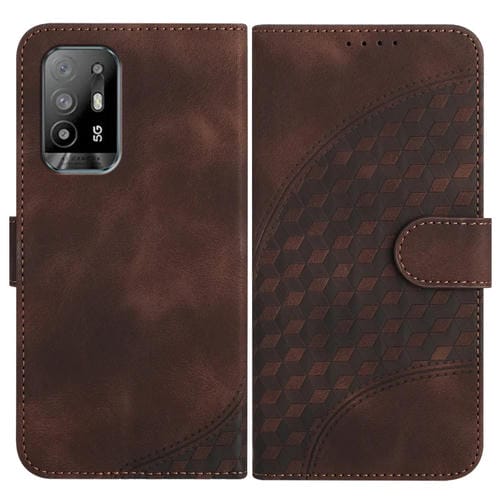 Para Oppo A94 5G / F19 Pro / F19 Pro + 5G / A94 4G Yx0060 Funda de Cuero para Teléfono con Relieve y Cabeza de Elefante con Cordón (Café)