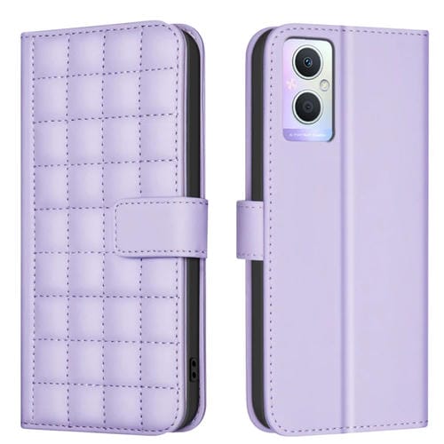 Para Oppo A96 5G / Reno7 Z Funda de Cuero para Teléfono con Textura Cuadrada (Púrpura)