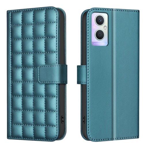 Para Oppo A96 5G / Reno7 Z Funda de Cuero para Teléfono con Textura Cuadrada (Verde)
