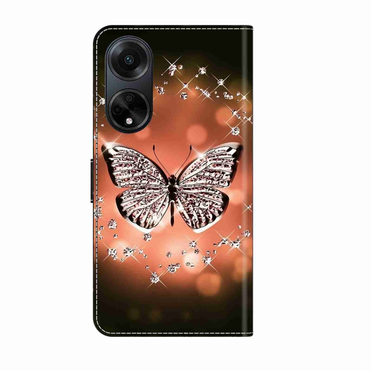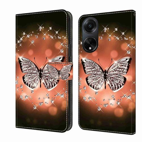 Para Oppo A98 5G Crystal 3D Funda Protectora de Cuero para Teléfono a Prueba de Golpes (Mariposa de Cristal)