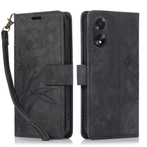 Para Oppo A98 5G Orchid Butterfly Funda de Cuero para Teléfono En Relieve (Negro)