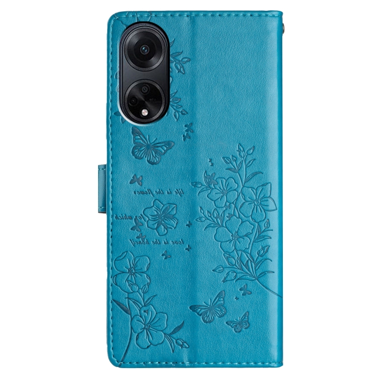 Para Oppo A98 Butterfly Love Flower Funda de Cuero para Teléfono En Relieve (Azul)