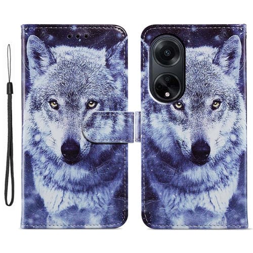 Para Oppo A98 Funda de Teléfono de Cuero con Tapa Horizontal con Patrón Pintado (Lobo Blanco)