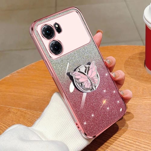 Para Oppo K10 Funda para Teléfono de TPU con Soporte de Mariposa con Brillo Degradado Plateado (Rosa)