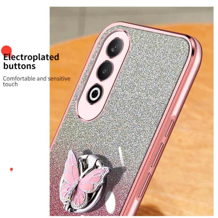 Para Oppo K12 Funda para Teléfono de TPU con Soporte de Mariposa con Brillo Degradado Plateado (Negro)