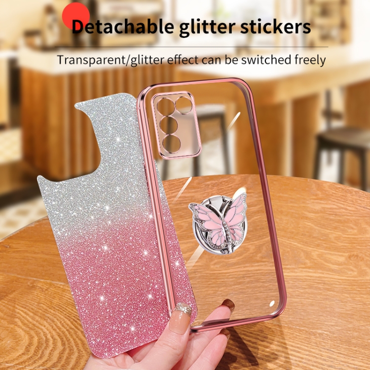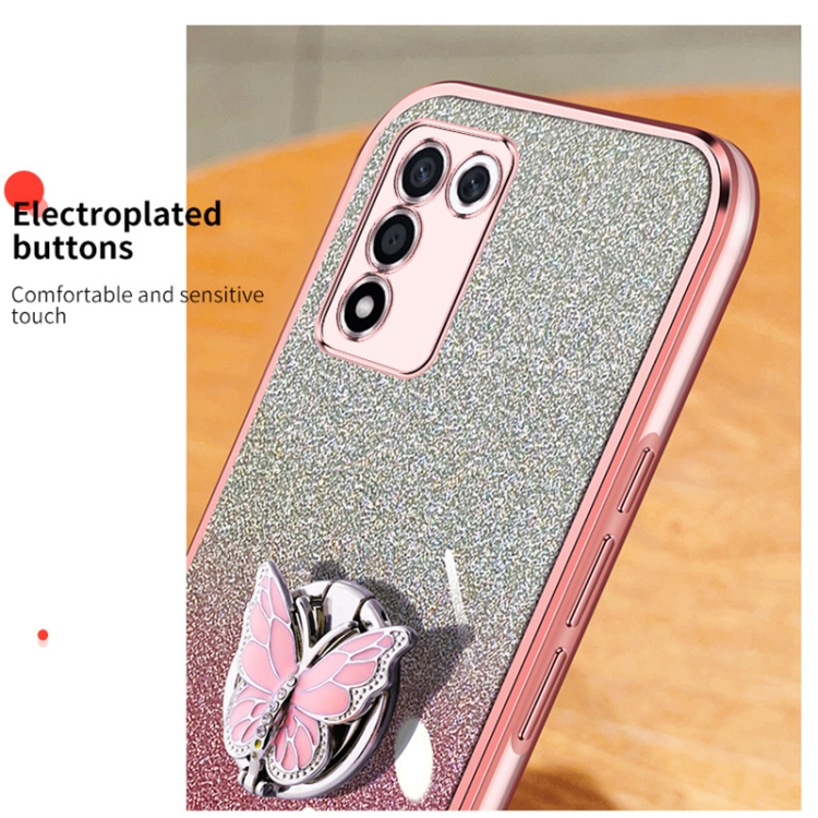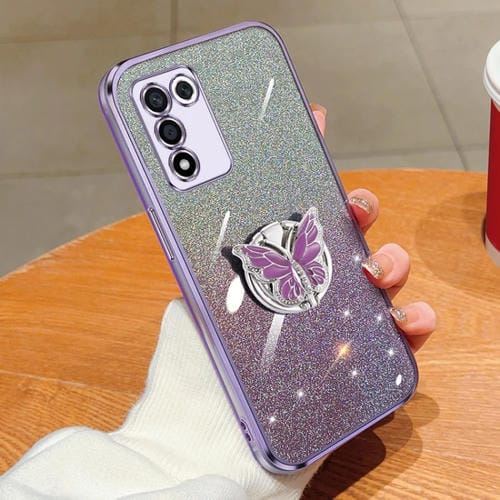 Para Oppo K9S Estuche para Teléfono de TPU con Soporte de Mariposa con Brillo Degradado Plateado (Púrpura)