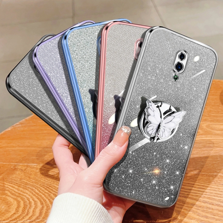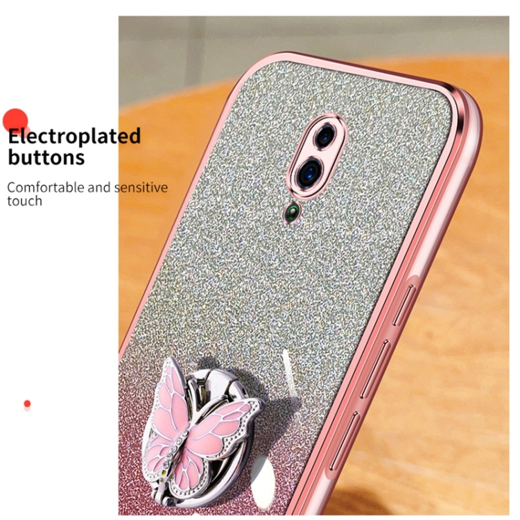 Para Oppo Reno Estuche para Teléfono de TPU con Soporte de Mariposa con Brillo Degradado Plateado (Negro)