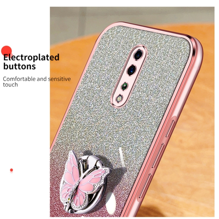 Para Oppo Reno Z Funda para Teléfono de TPU con Soporte de Mariposa con Brillo Degradado Plateado (Rosa)