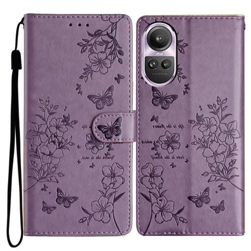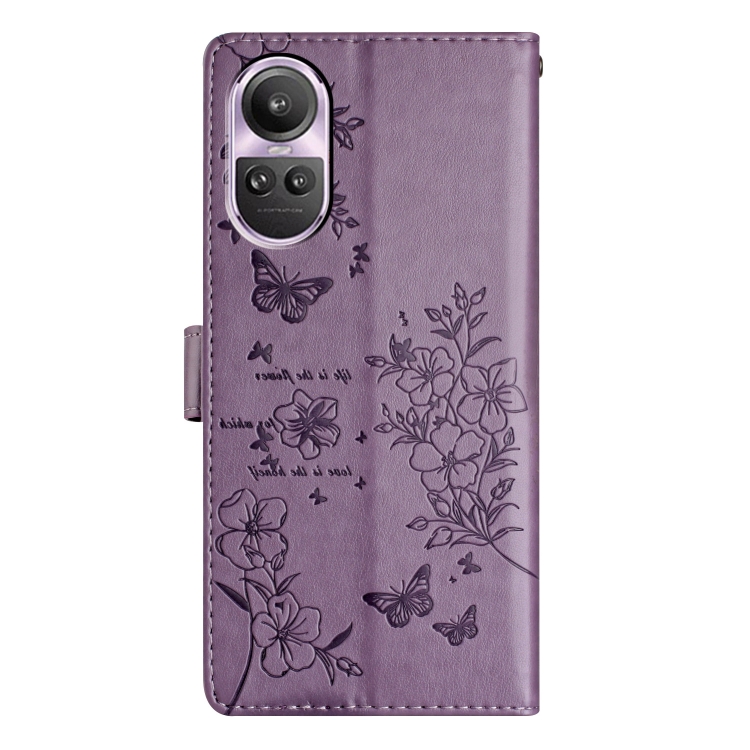 Para Oppo Reno10 / Reno10 Pro Butterfly Love Flower Funda de Cuero para Teléfono En Relieve (Púrpura)