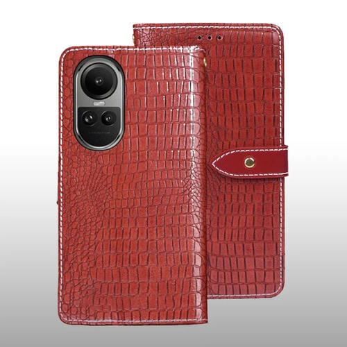 Para Oppo Reno10 / Reno10 Pro Funda para Teléfono de Cuero con Textura de Cocodrilo Global Idewei (Rojo)