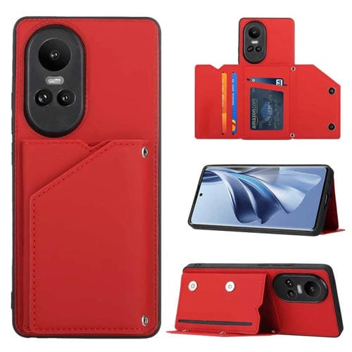 Para Oppo Reno10 / Reno10 Pro Global Skin Feel Pu + TPU + Funda para Teléfono con Ranuras para Tarjetas de PC (Rojo)