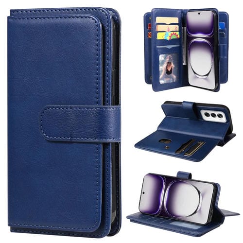 Para Oppo Reno12 5G Cartera Multifunción Global 10 Ranuras para Tarjetas Funda de Cuero para Teléfono (Azul Oscuro)