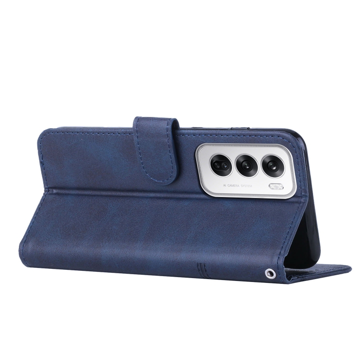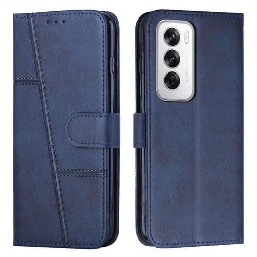Para Oppo Reno12 5G Funda de Teléfono de Cuero con Hebilla y Textura de Pantorrilla con Costura Global (Azul)