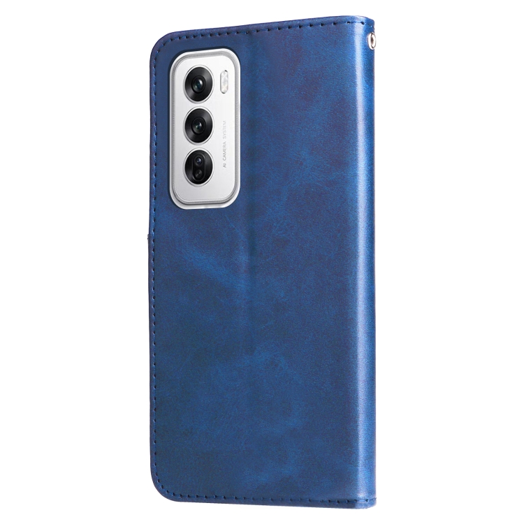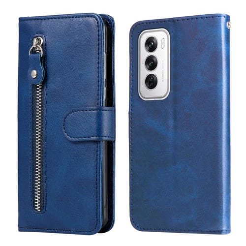 Para Oppo Reno12 5G Funda para Teléfono de Cuero con Cremallera y Textura de Becerro de Moda Global (Azul)