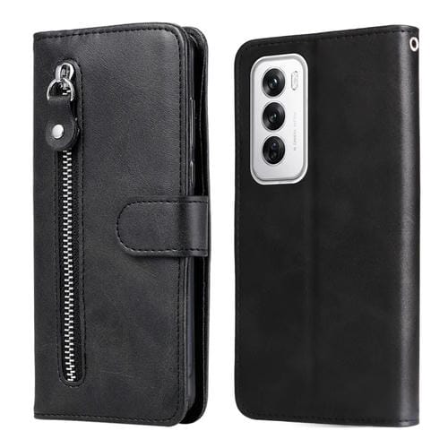 Para Oppo Reno12 5G Funda para Teléfono de Cuero con Cremallera y Textura de Becerro de Moda Global (Negro)