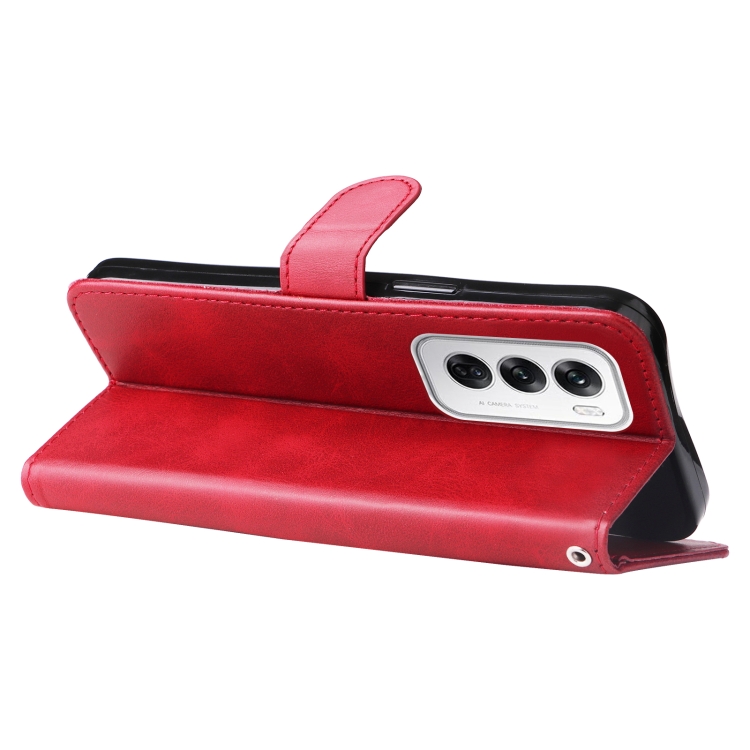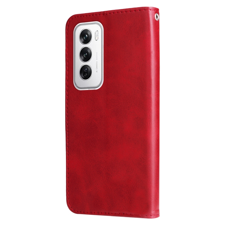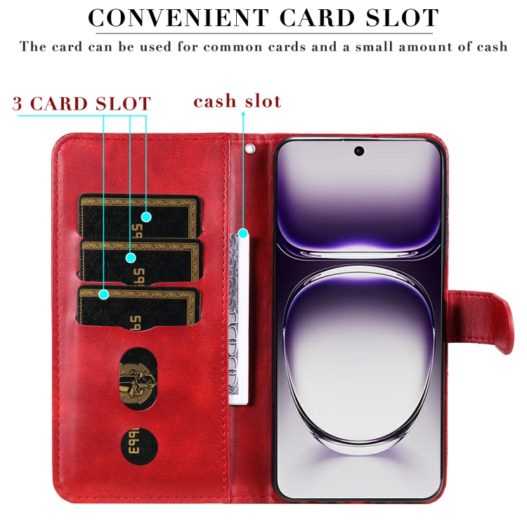 Para Oppo Reno12 5G Funda para Teléfono de Cuero con Cremallera y Textura de Becerro de Moda Global (Rojo)