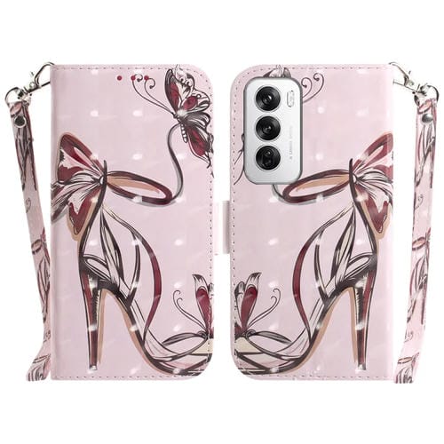Para Oppo Reno12 5G Global 3D Funda de Cuero con Tapa Horizontal de Color (Mariposa de Tacón Alto)