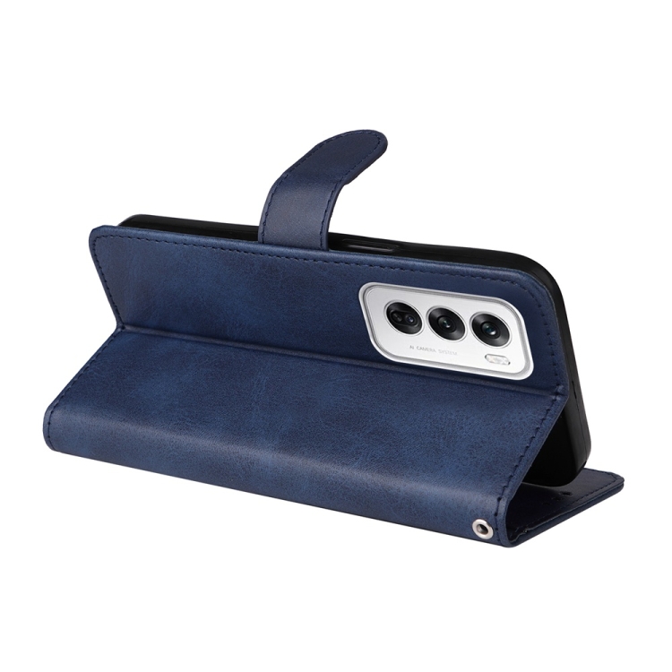 Para Oppo Reno12 5G Global Classic Calf Texture Funda de Cuero con Tapa para Teléfono (Azul)