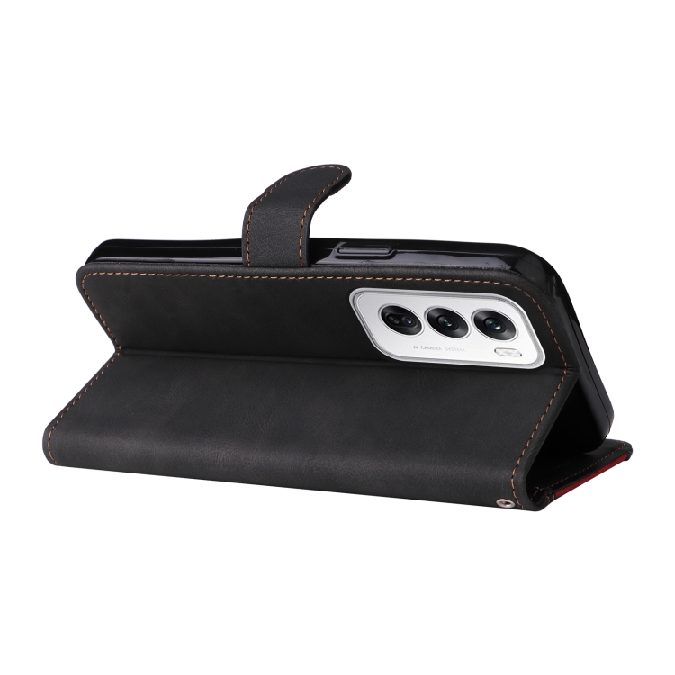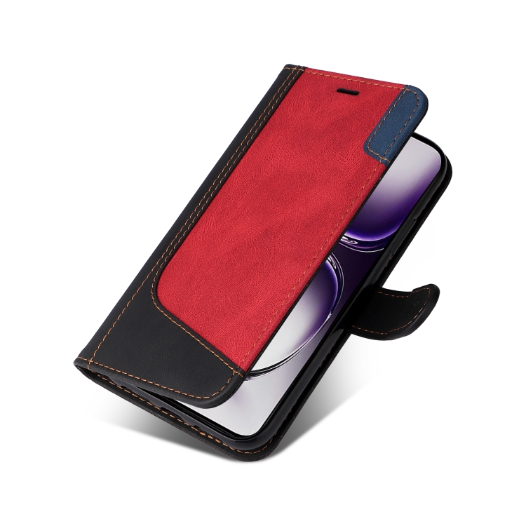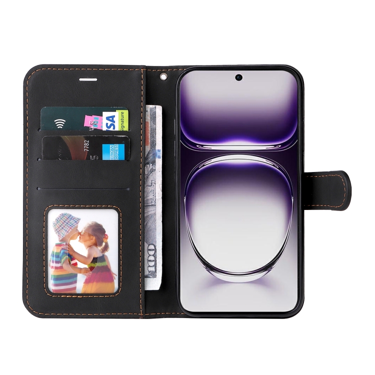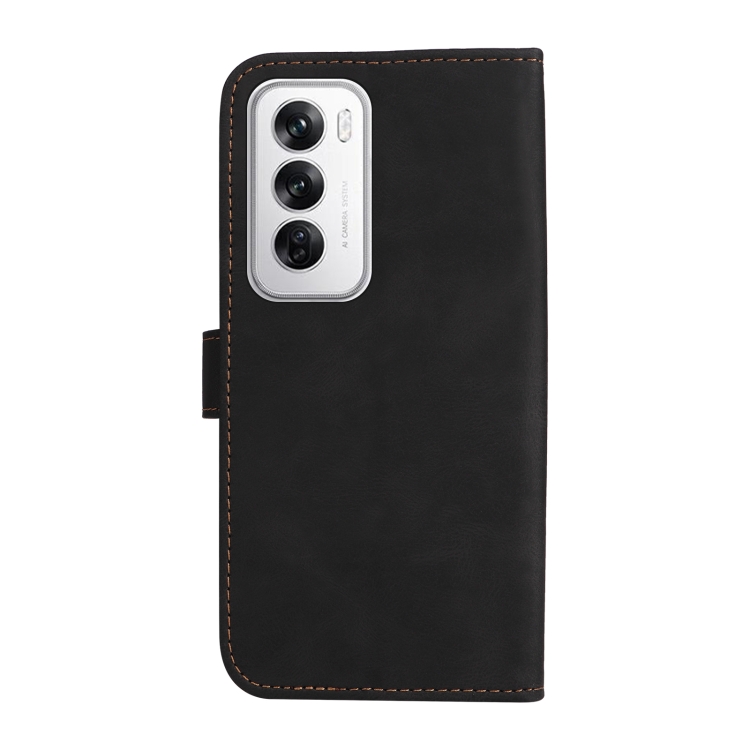 Para Oppo Reno12 5G Global Estuche de Teléfono de Cuero con Empalme de Tres Colores (Negro)