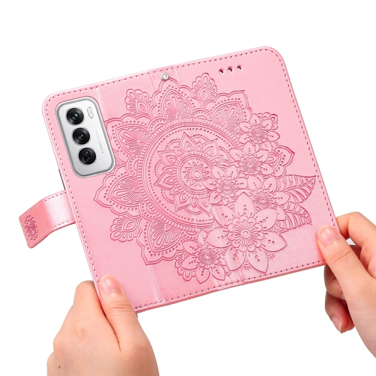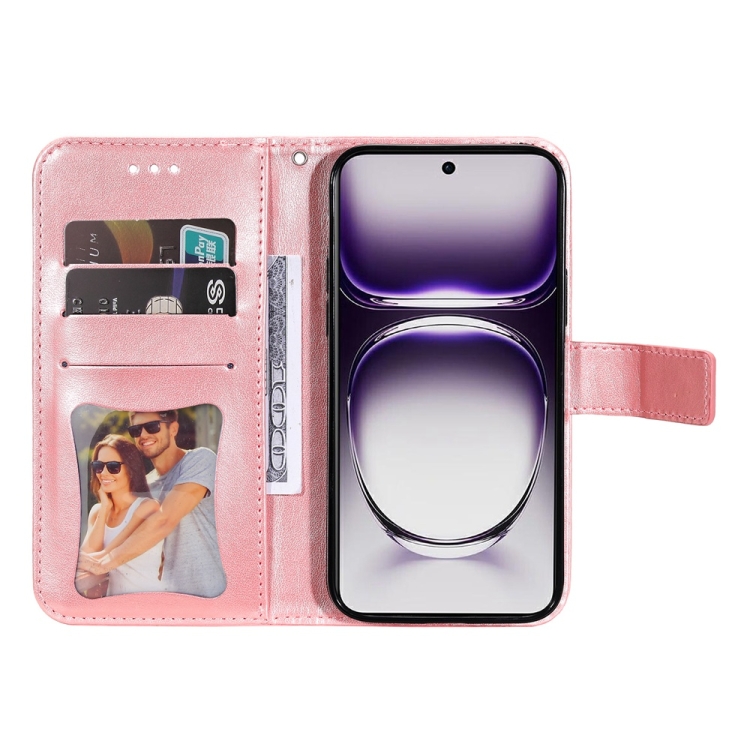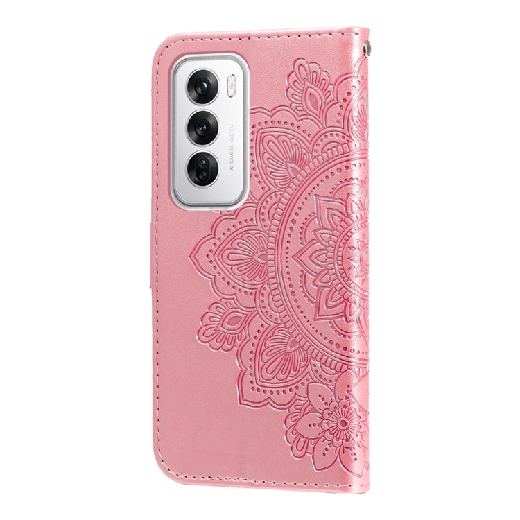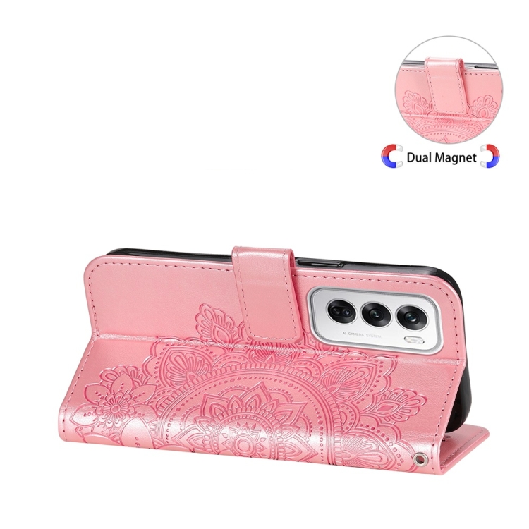 Para Oppo Reno12 5G Global Funda para Teléfono de Cuero con Estampado de Flores de Siete Pétalos (Oro Rosa)