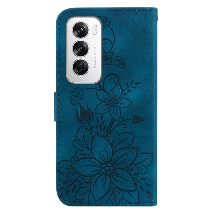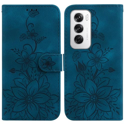 Para Oppo Reno12 5G Global Lily Funda de Teléfono de Cuero En Relieve (Azul Oscuro)