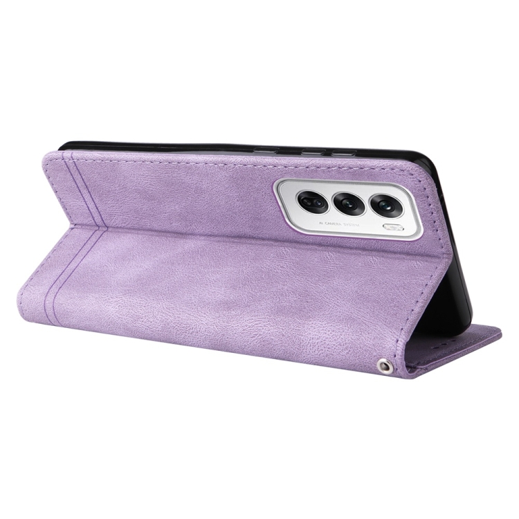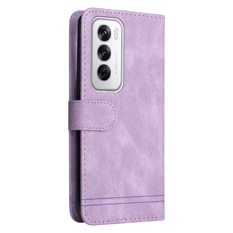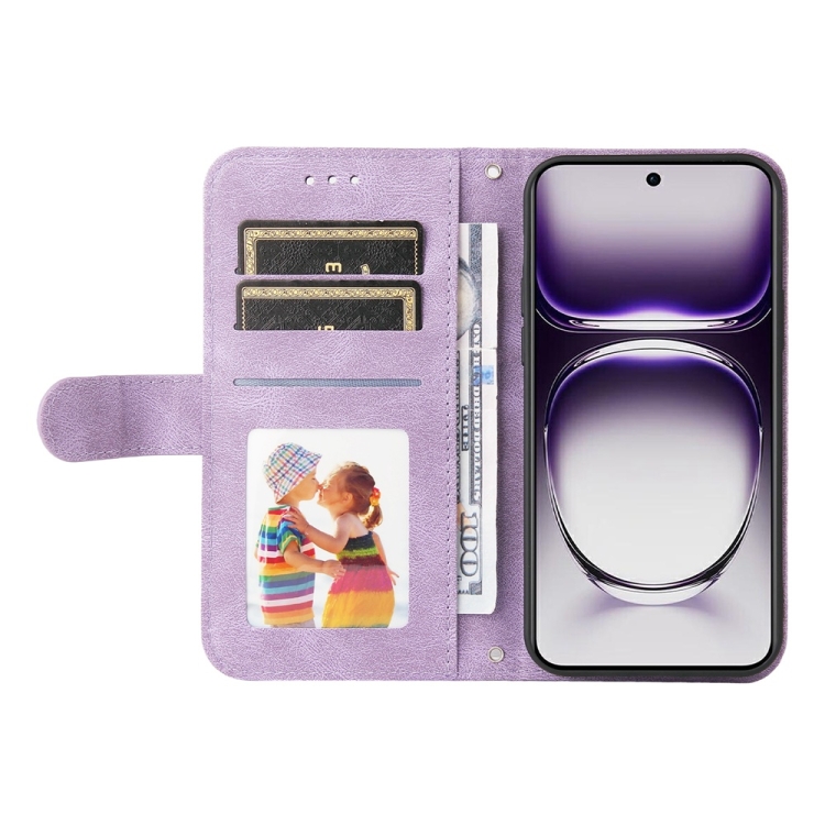 Para Oppo Reno12 5G Global Skin Feel Life Tree Funda de Cuero con Botón de Metal (Púrpura)