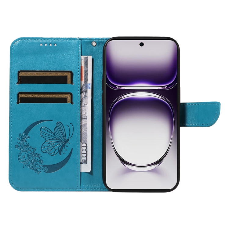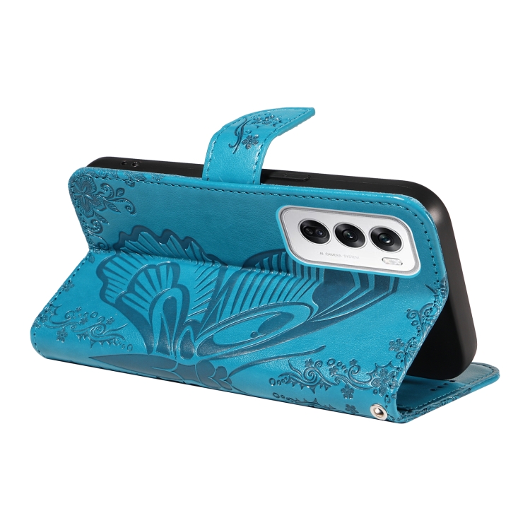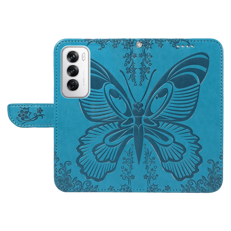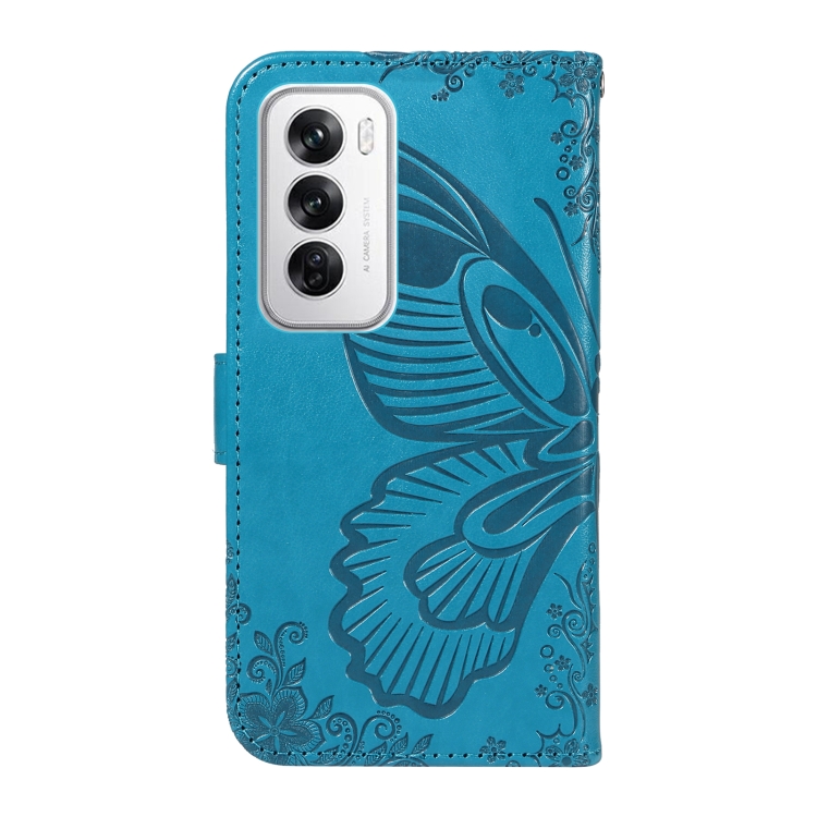 Para Oppo Reno12 5G Global Swallowtail Butterfly Funda de Cuero para Teléfono En Relieve (Azul)