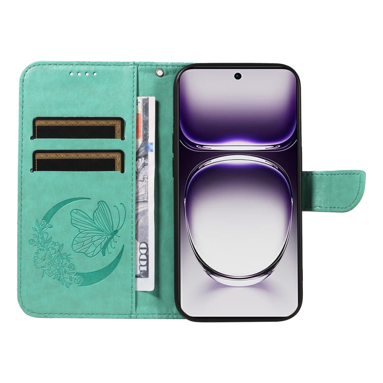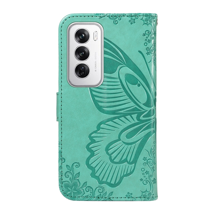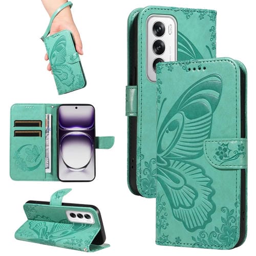 Para Oppo Reno12 5G Global Swallowtail Butterfly Funda de Cuero para Teléfono En Relieve (Verde)
