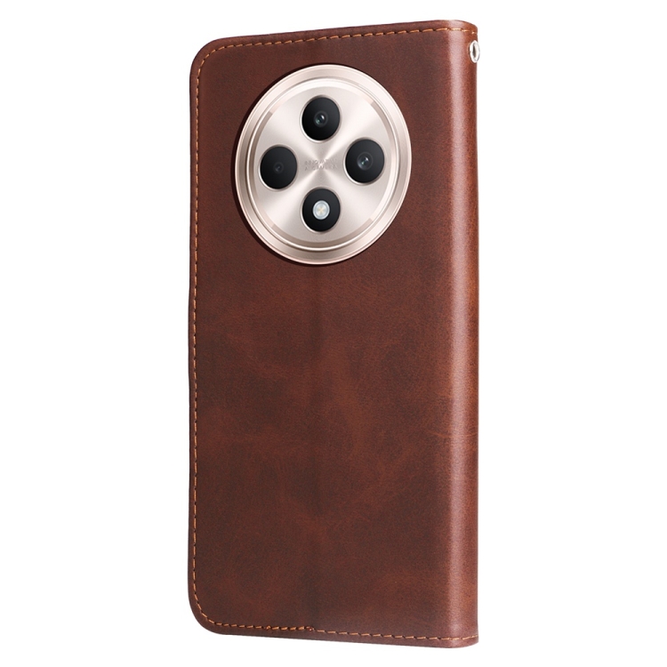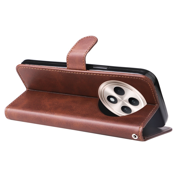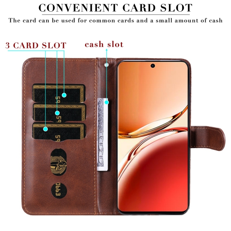 Para Oppo Reno12 F 5G Funda para Teléfono de Cuero con Cremallera y Textura de Becerro de Moda Global (Marrón)