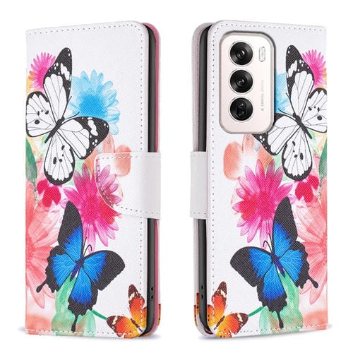 Para Oppo Reno12 Funda de Cuero para Teléfono con Patrón de Dibujo Coloreado Global (Mariposas)