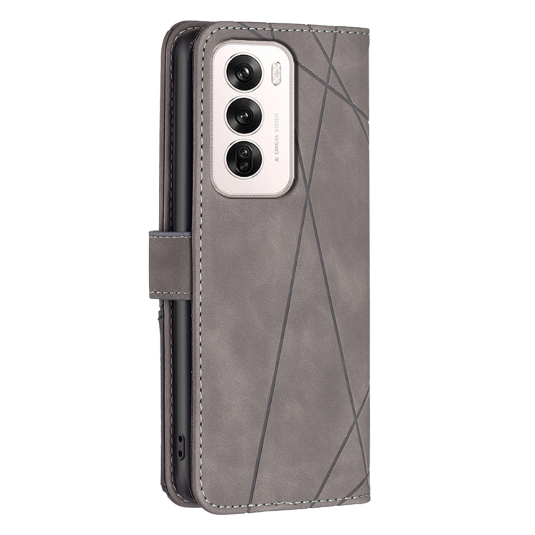 Para Oppo Reno12 Funda de Teléfono de Cuero con Textura de Rombo con Hebilla Magnética Global (Gris)