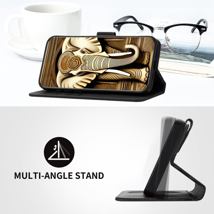 Para Oppo Reno12 Global Yx0060 Funda de Cuero para Teléfono con Relieve y Cabeza de Elefante con Cordón (Negro)