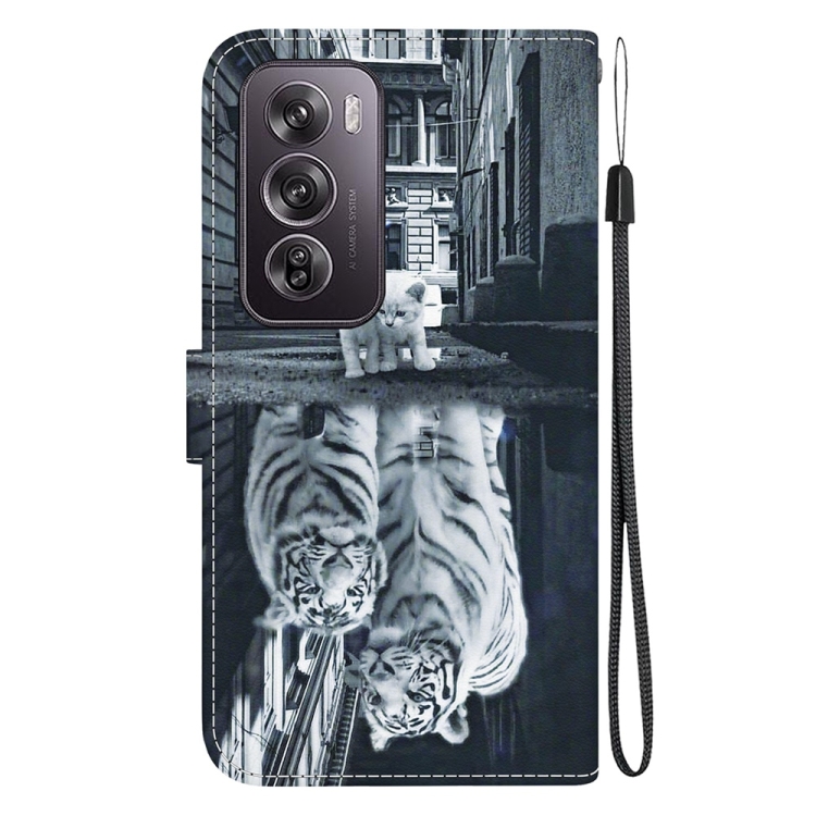 Para Oppo Reno12 Pro 5G Funda de Teléfono de Cuero con Dibujo Coloreado con Textura de Cristal Global (Reflejo de Tigre Gato)
