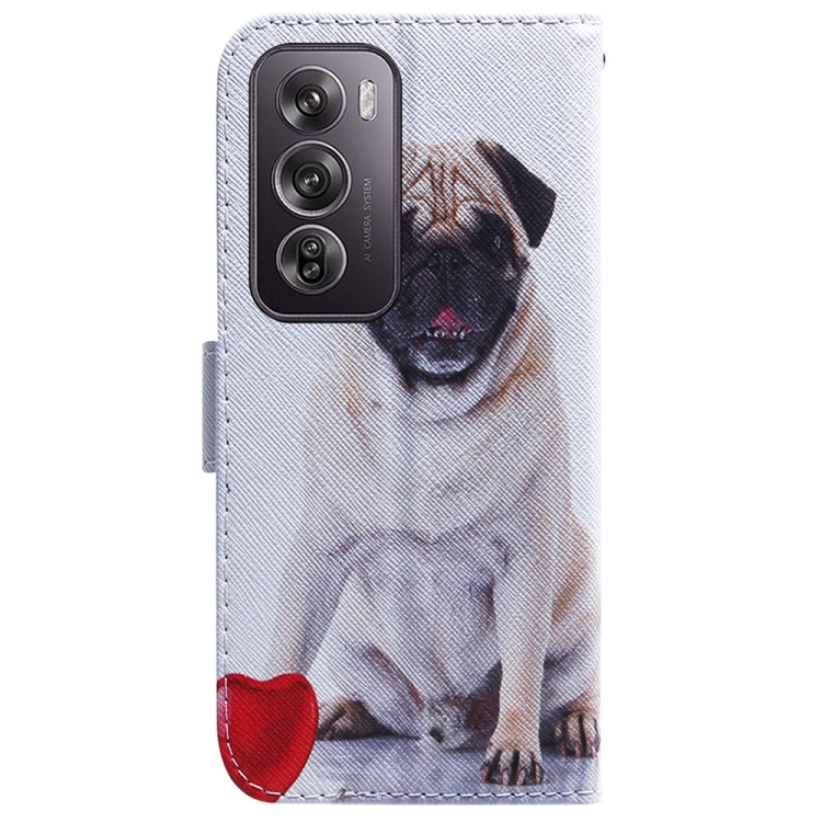 Para Oppo Reno12 Pro 5G Funda de Teléfono de Cuero con Tapa con Dibujo Coloreado Global (Pug)