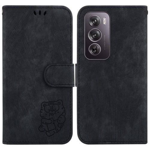 Para Oppo Reno12 Pro 5G Global Little Tiger Funda de Cuero para Teléfono En Relieve (Negro)