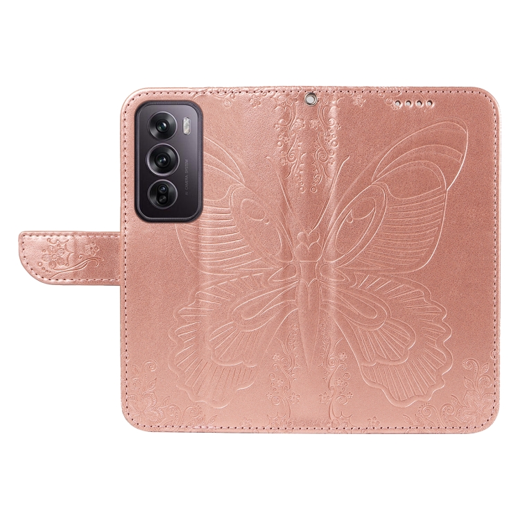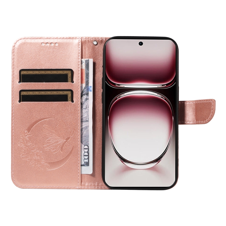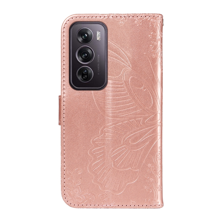 Para Oppo Reno12 Pro 5G Global Swallowtail Butterfly Funda de Cuero En Relieve para Teléfono (Oro Rosa)