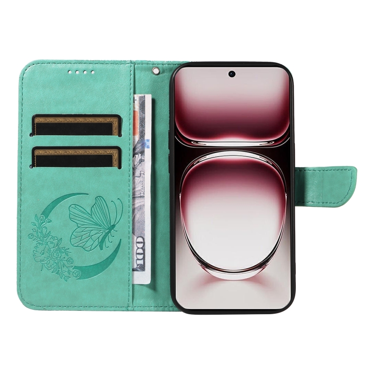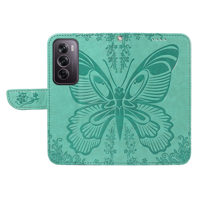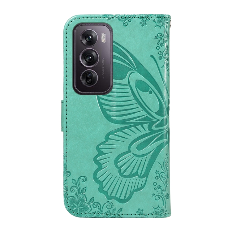 Para Oppo Reno12 Pro 5G Global Swallowtail Butterfly Funda de Cuero En Relieve para Teléfono (Verde)