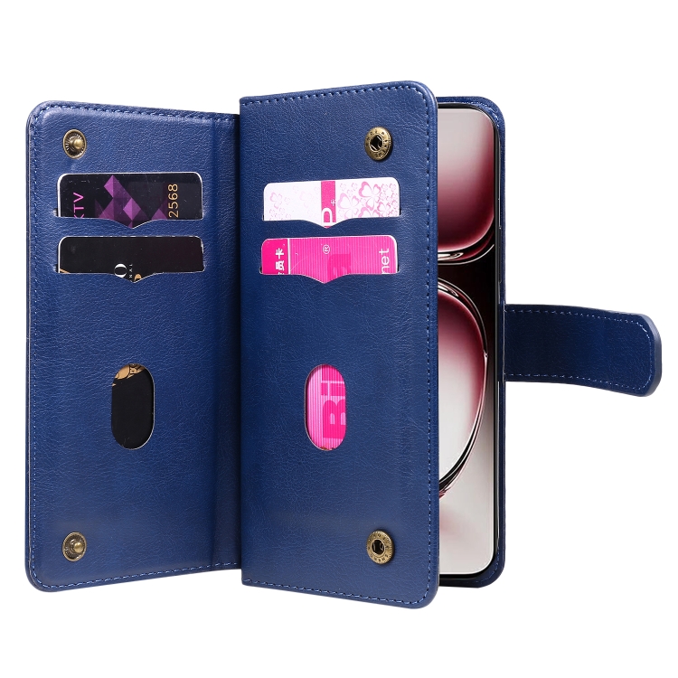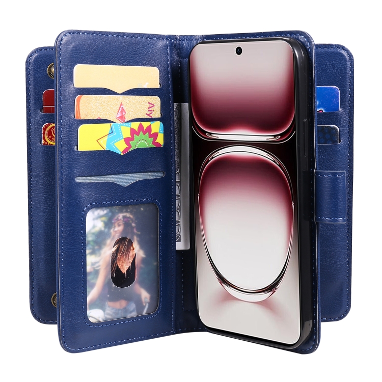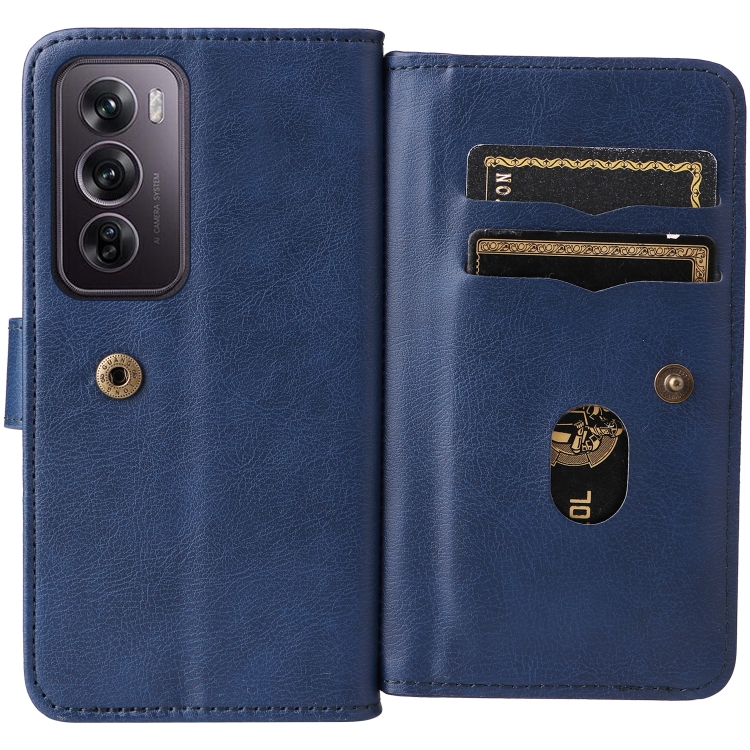 Para Oppo Reno12 Pro Cartera Multifunción Global 10 Ranuras para Tarjetas Funda de Cuero para Teléfono (Azul Oscuro)